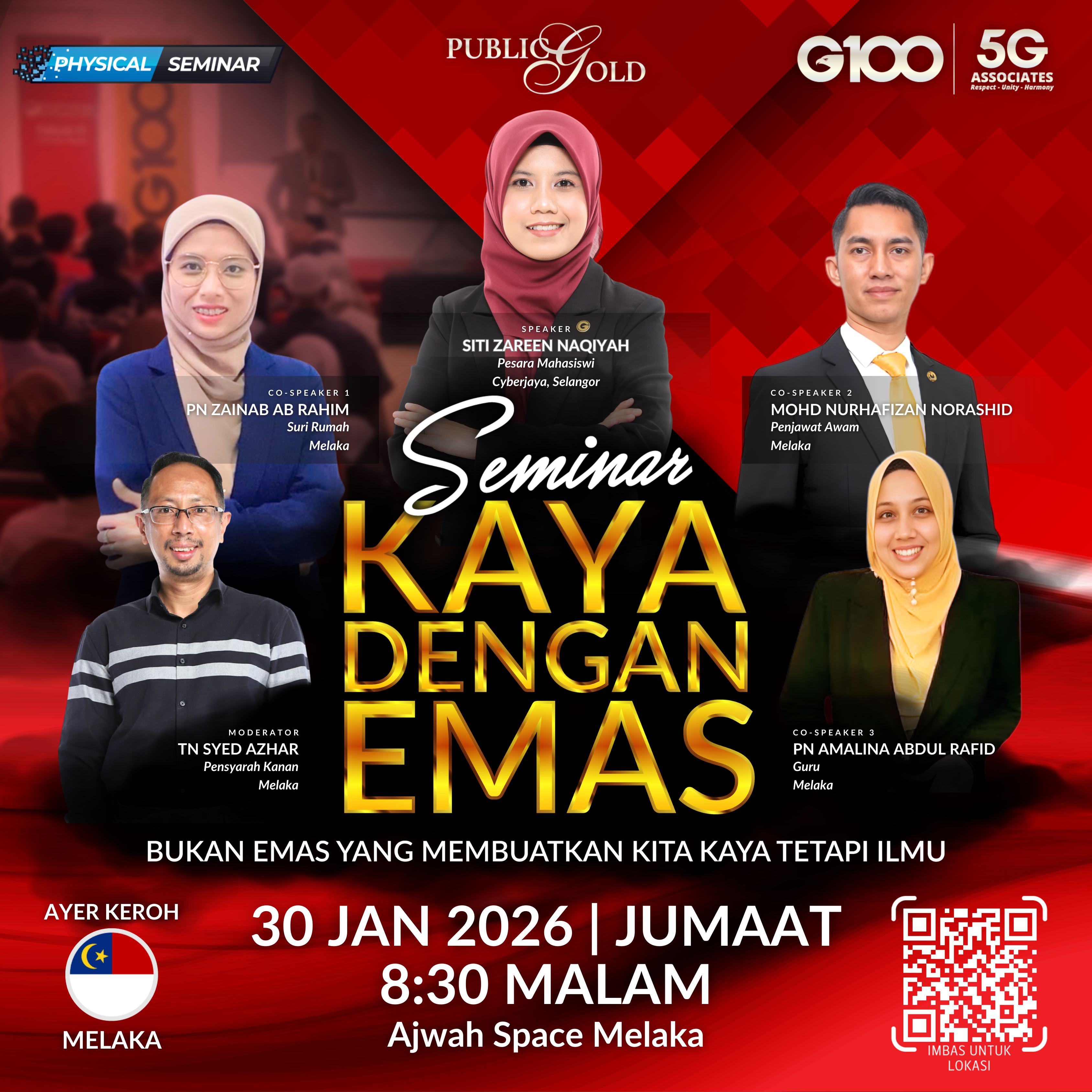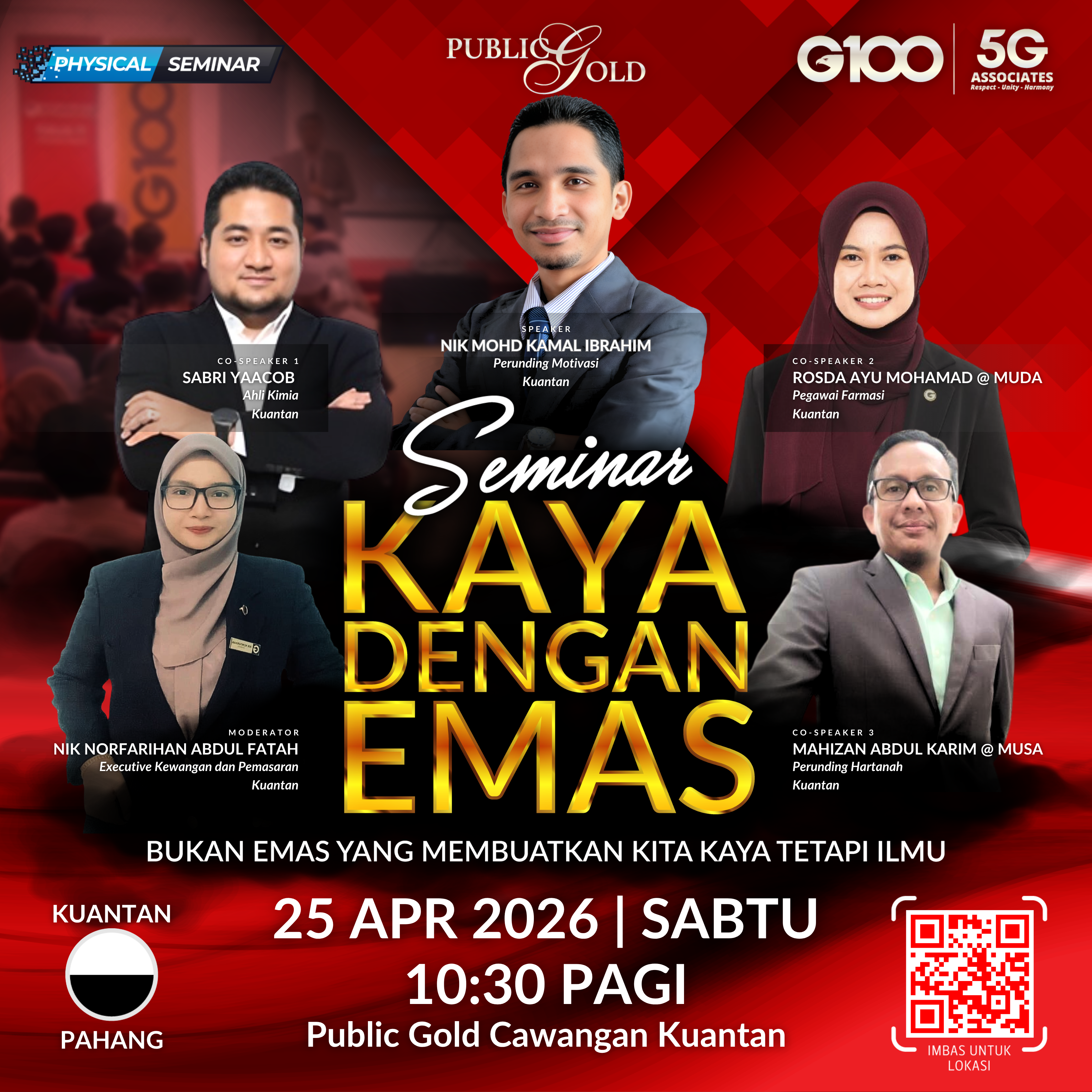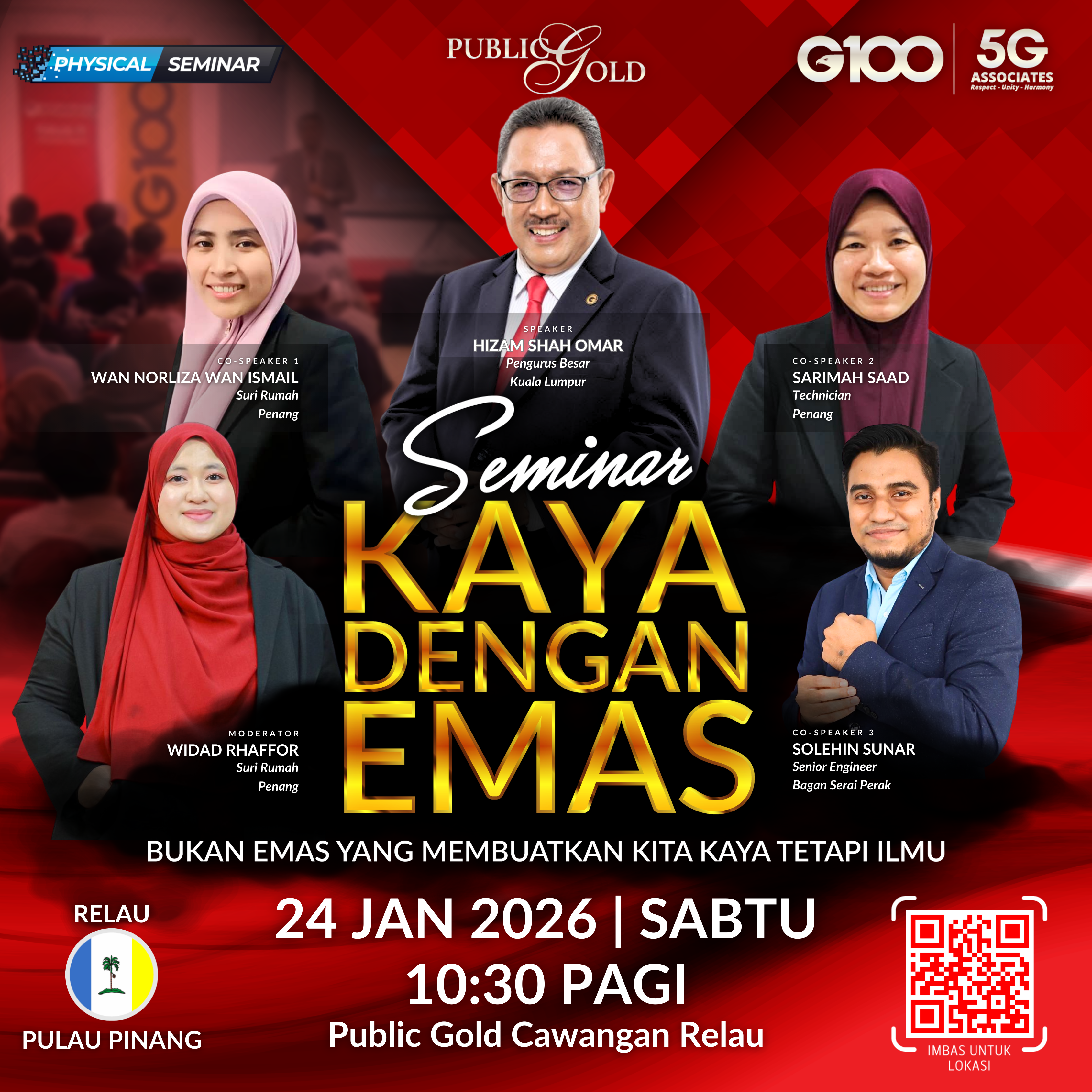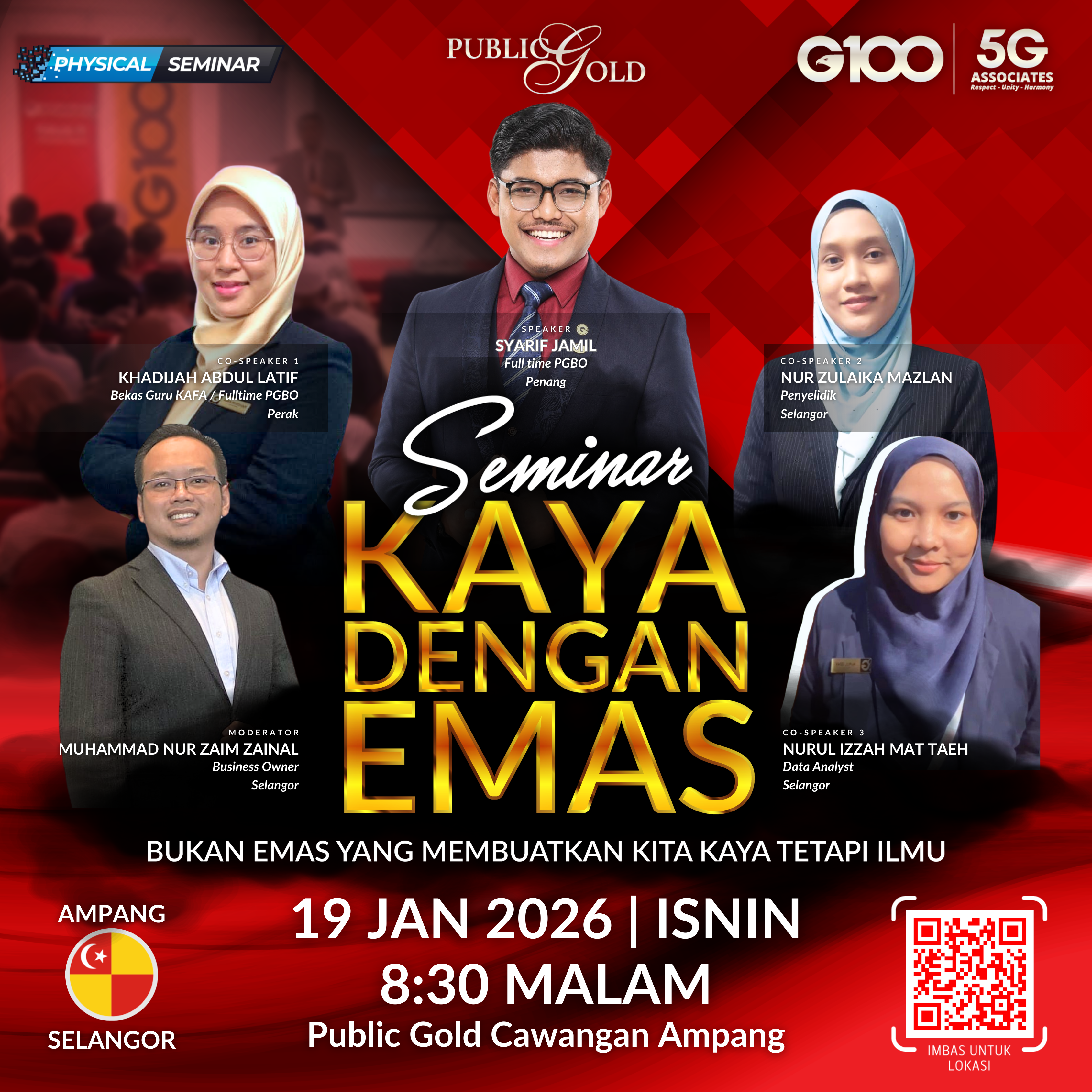 Penyertaan percuma. Terhad 100 pendaftaran pertama. Cabutan bertuah dan promosi (firesales) emas juga disediakan. Sila datang awal untuk dapatkan seat selesa. Seminar akan bermula tepat 8:30 malam