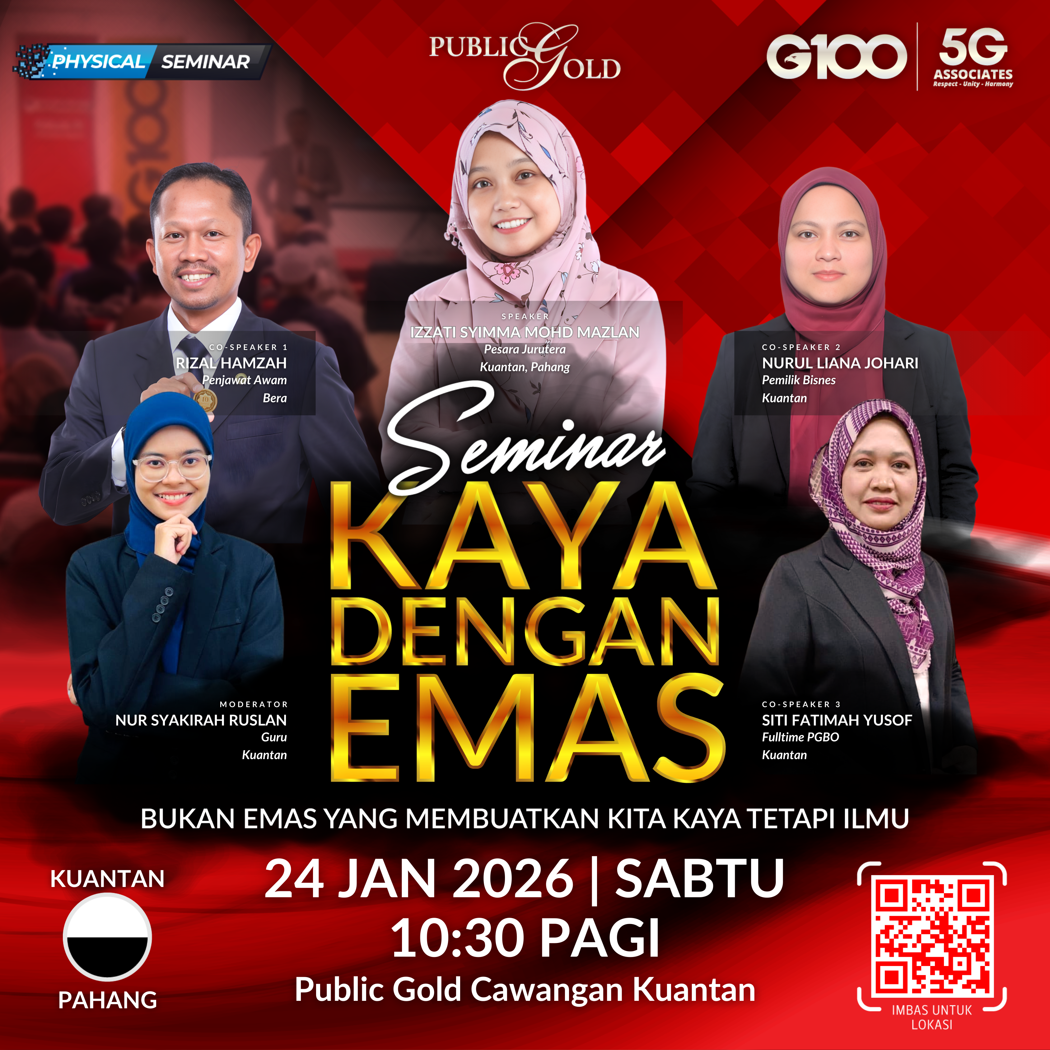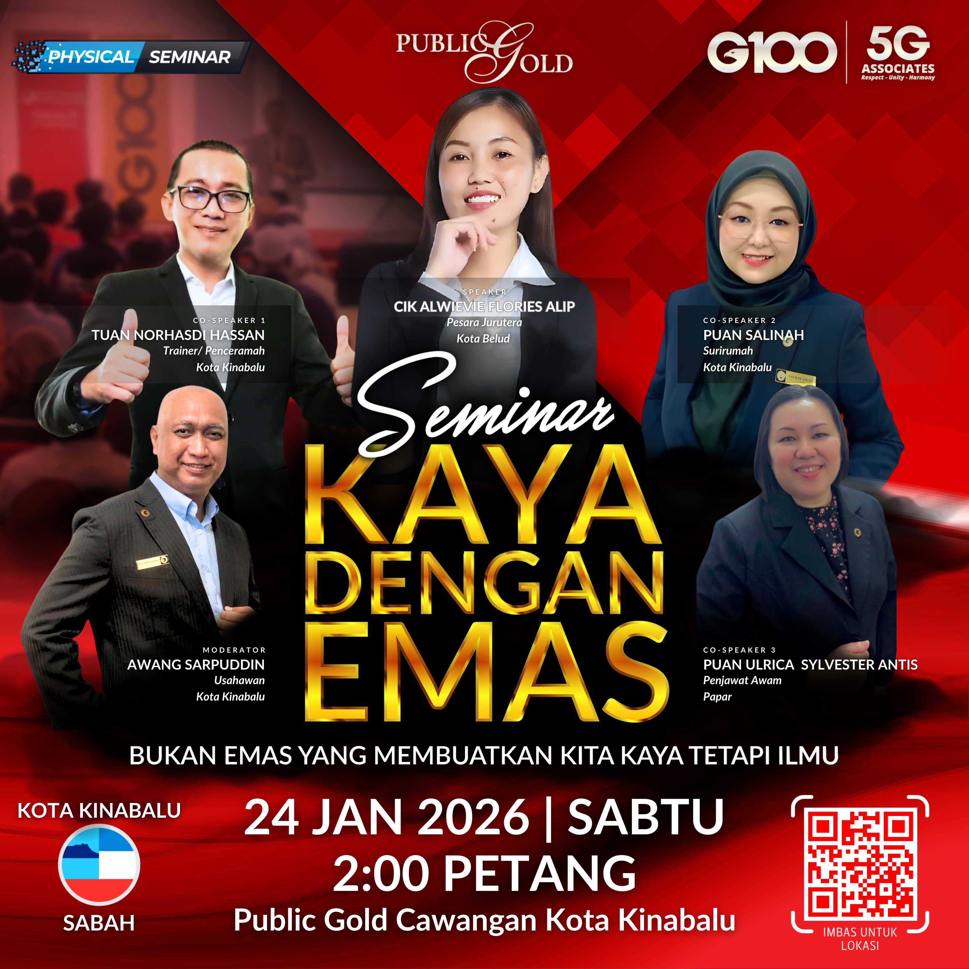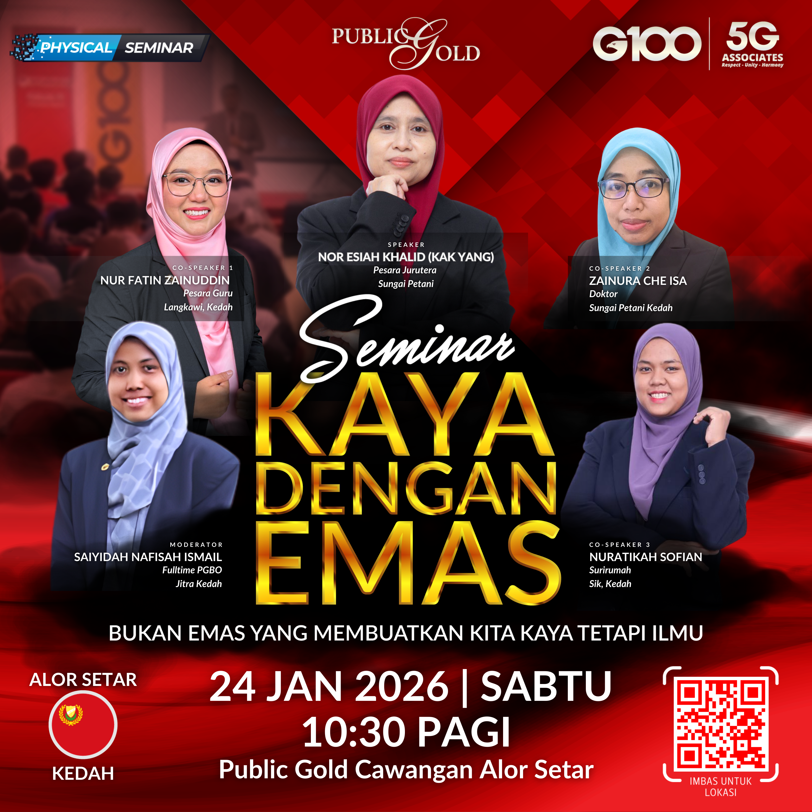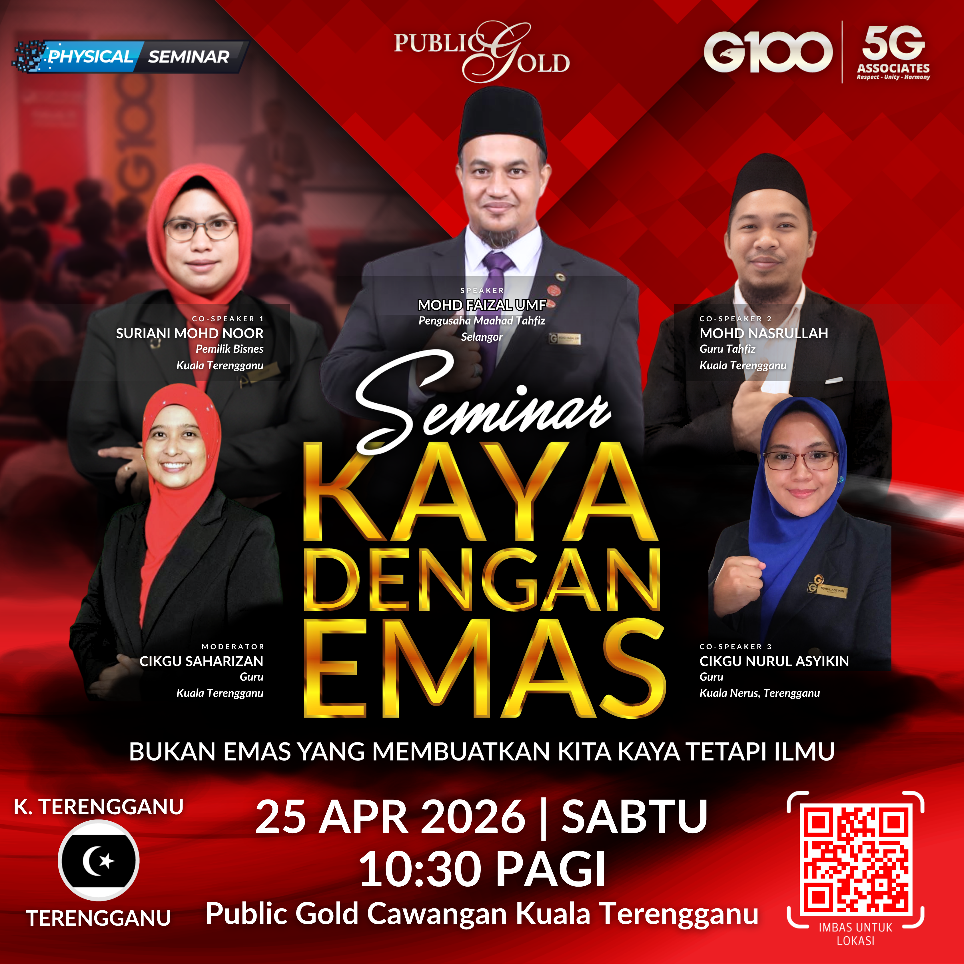 Penyertaan percuma. Terhad 100 pendaftaran pertama. Cabutan bertuah dan promosi (firesales) emas juga disediakan. Sila datang awal untuk dapatkan seat selesa. Seminar akan bermula tepat 8:30 malam