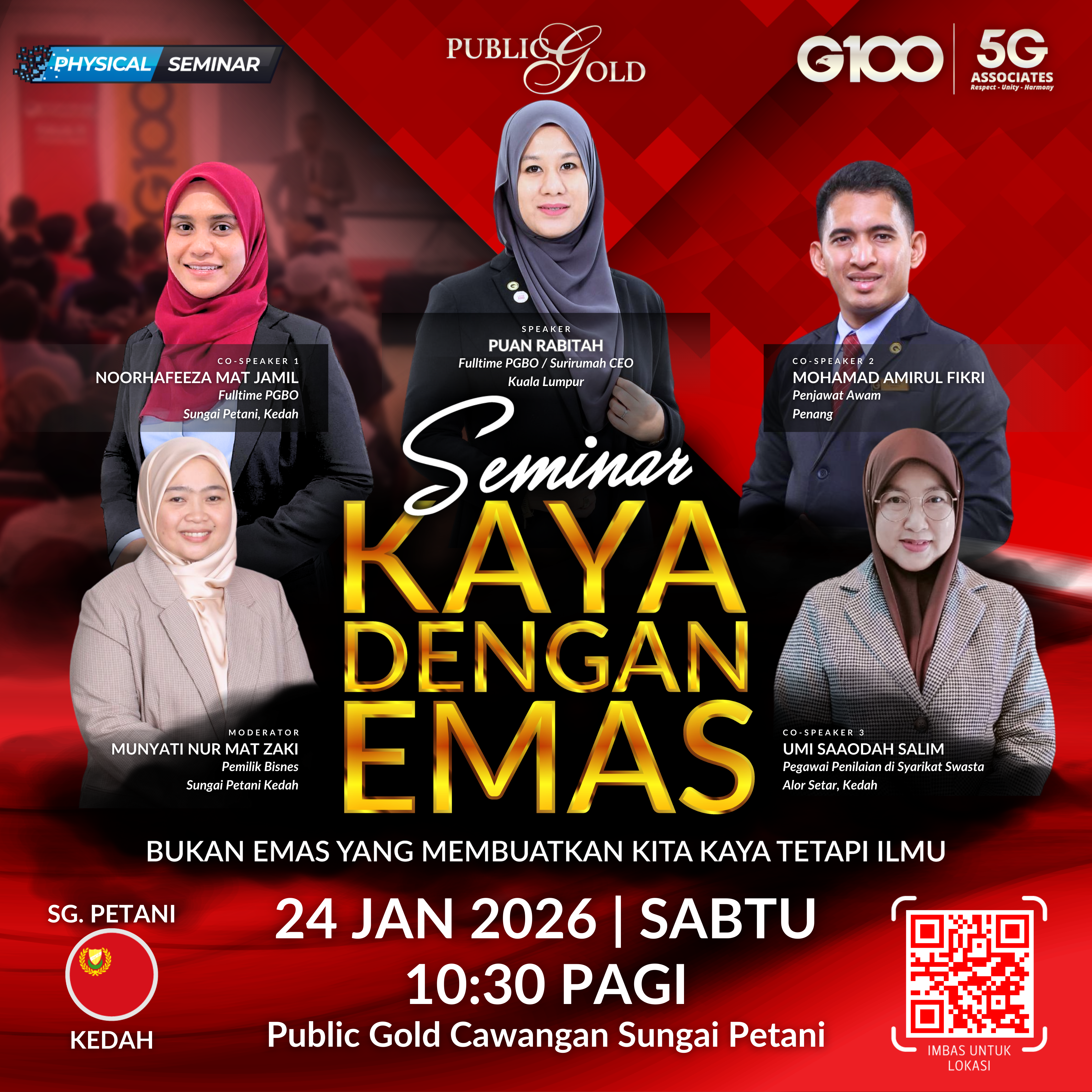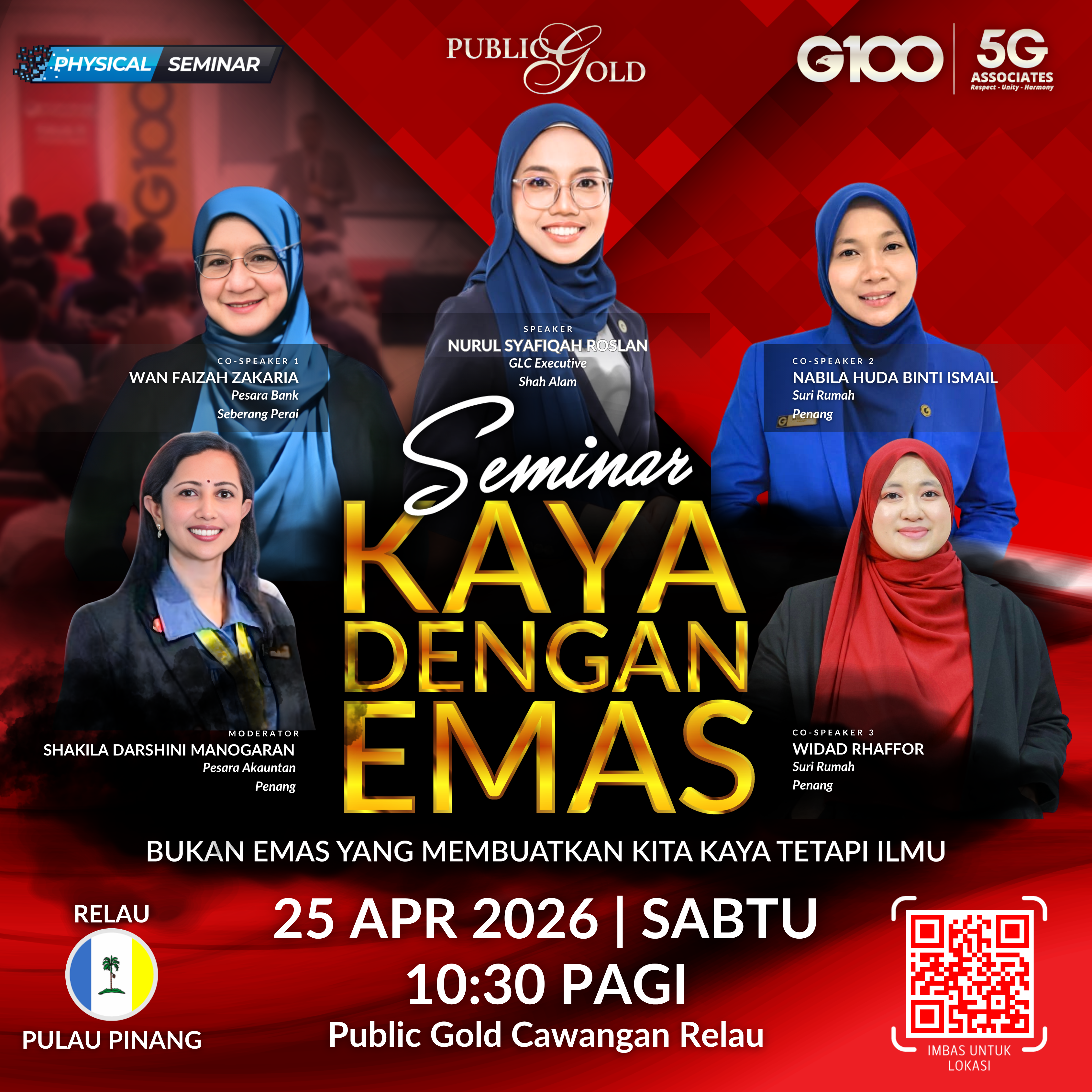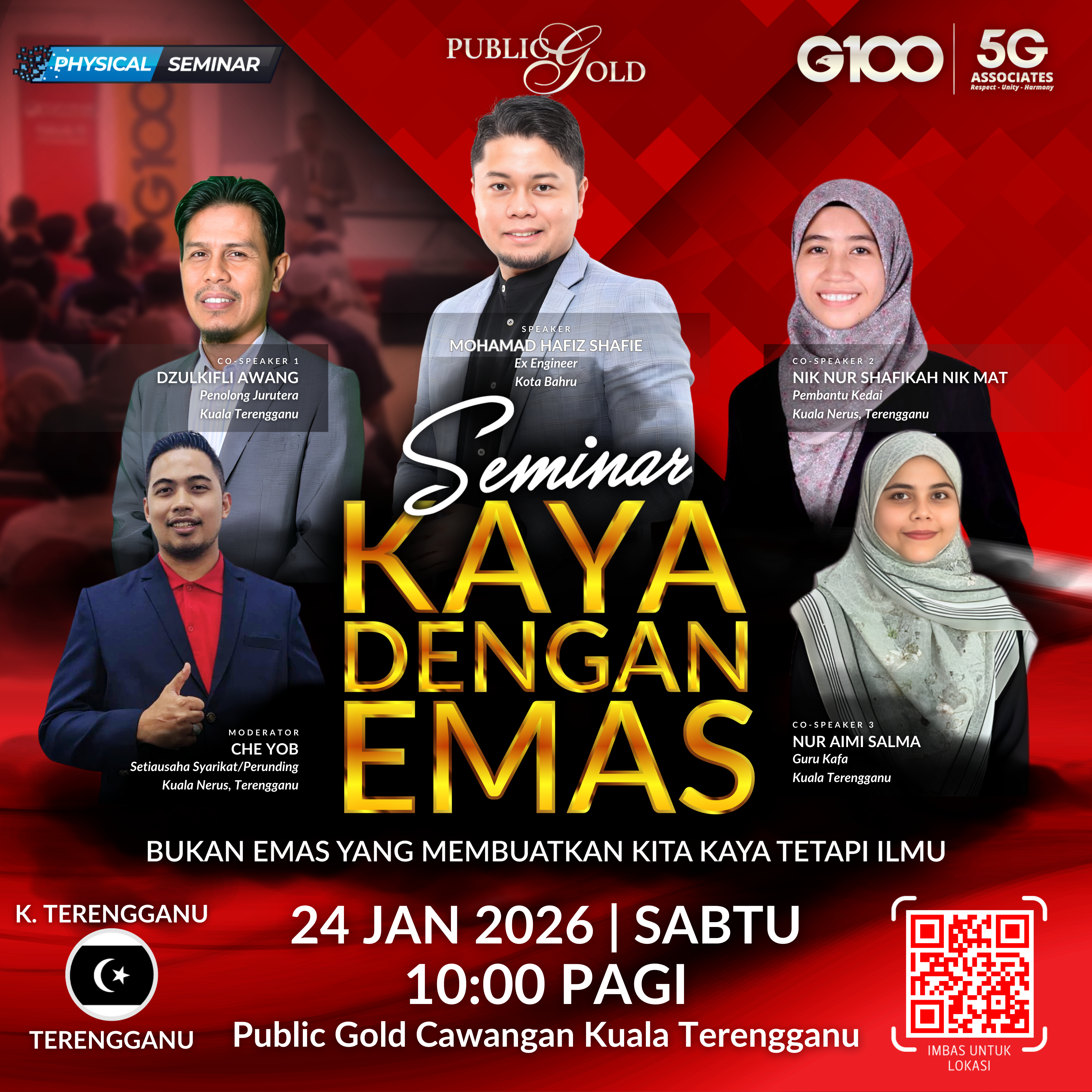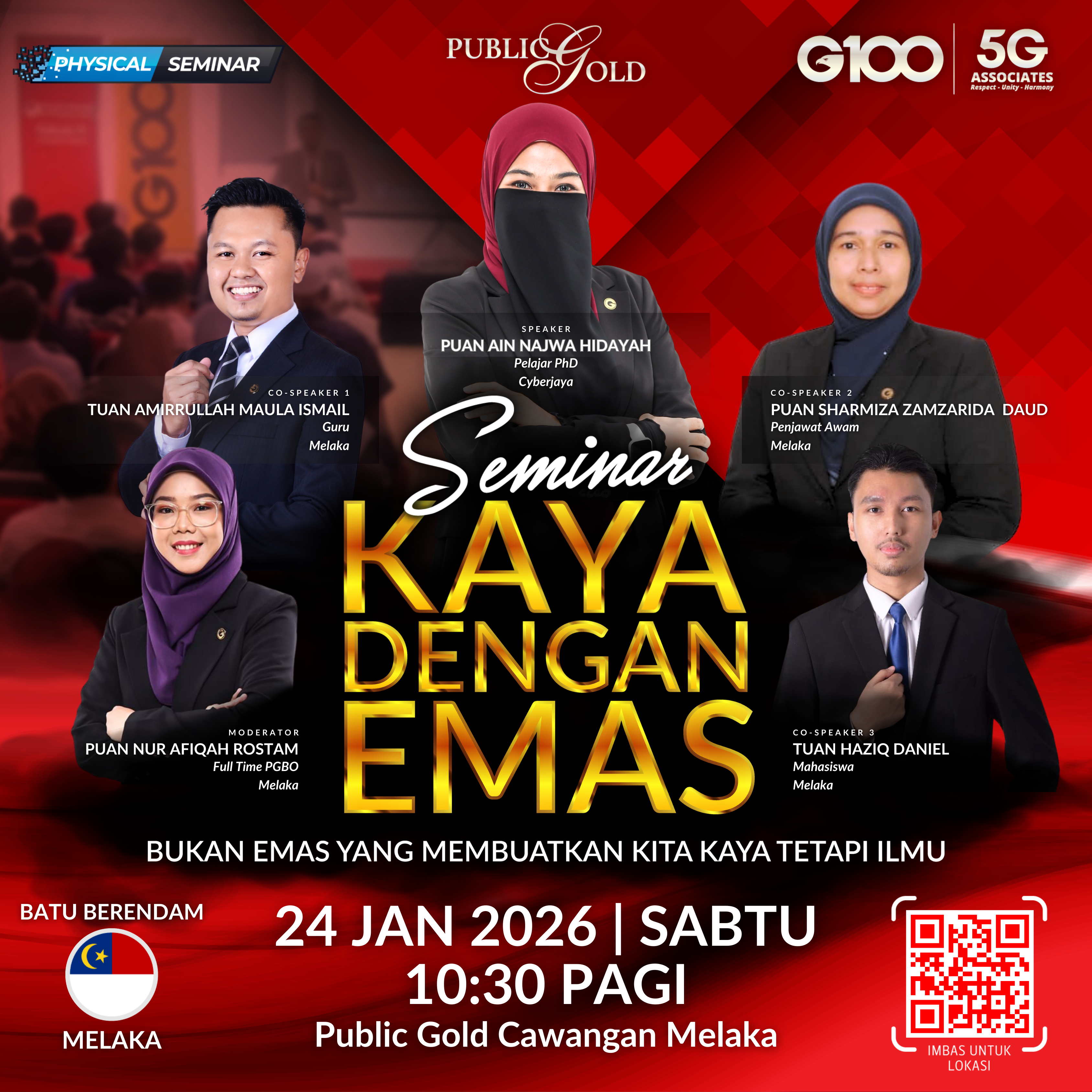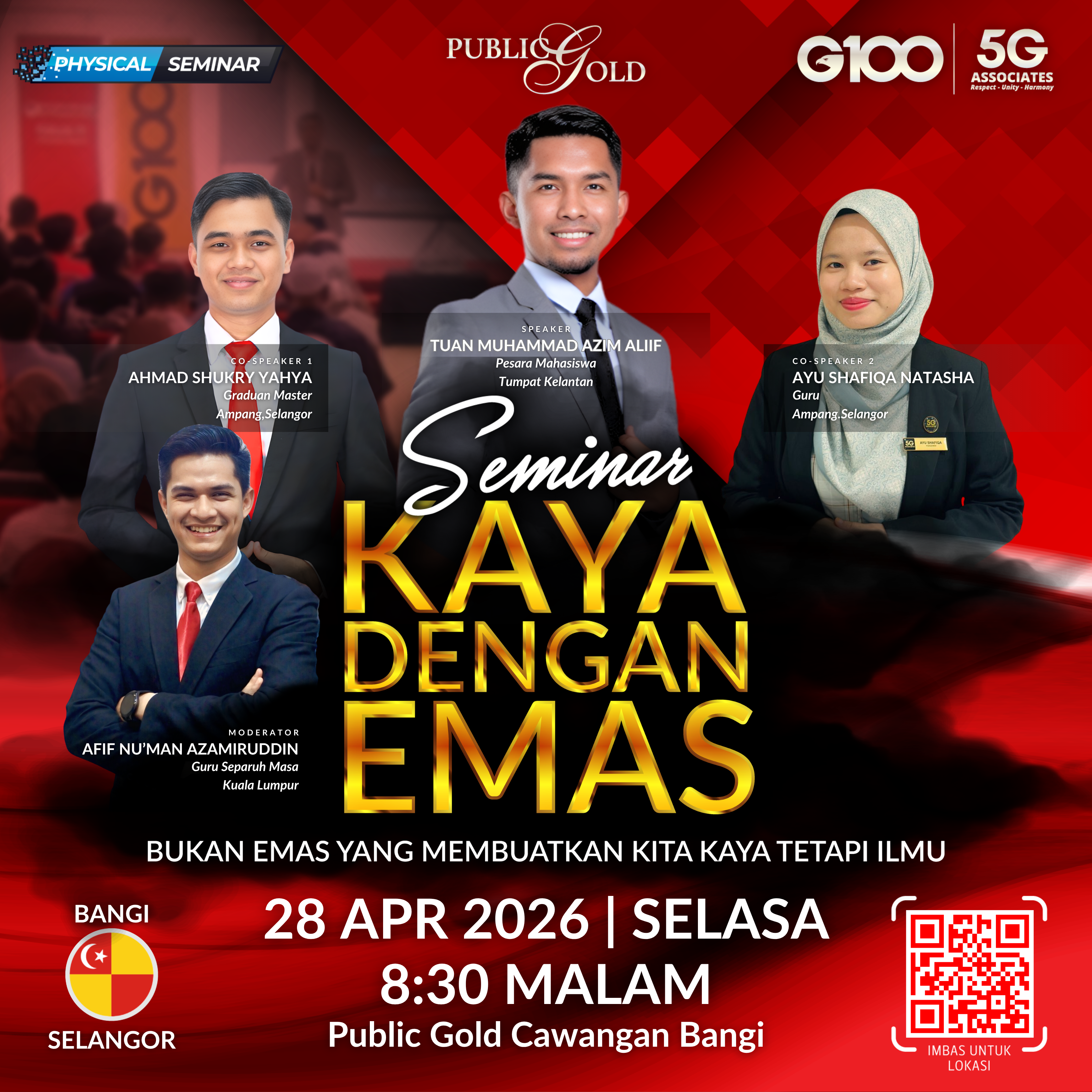 Penyertaan percuma. Terhad 100 pendaftaran pertama. Cabutan bertuah dan promosi (firesales) emas juga disediakan. Sila datang awal untuk dapatkan seat selesa. Seminar akan bermula tepat 8:30 malam