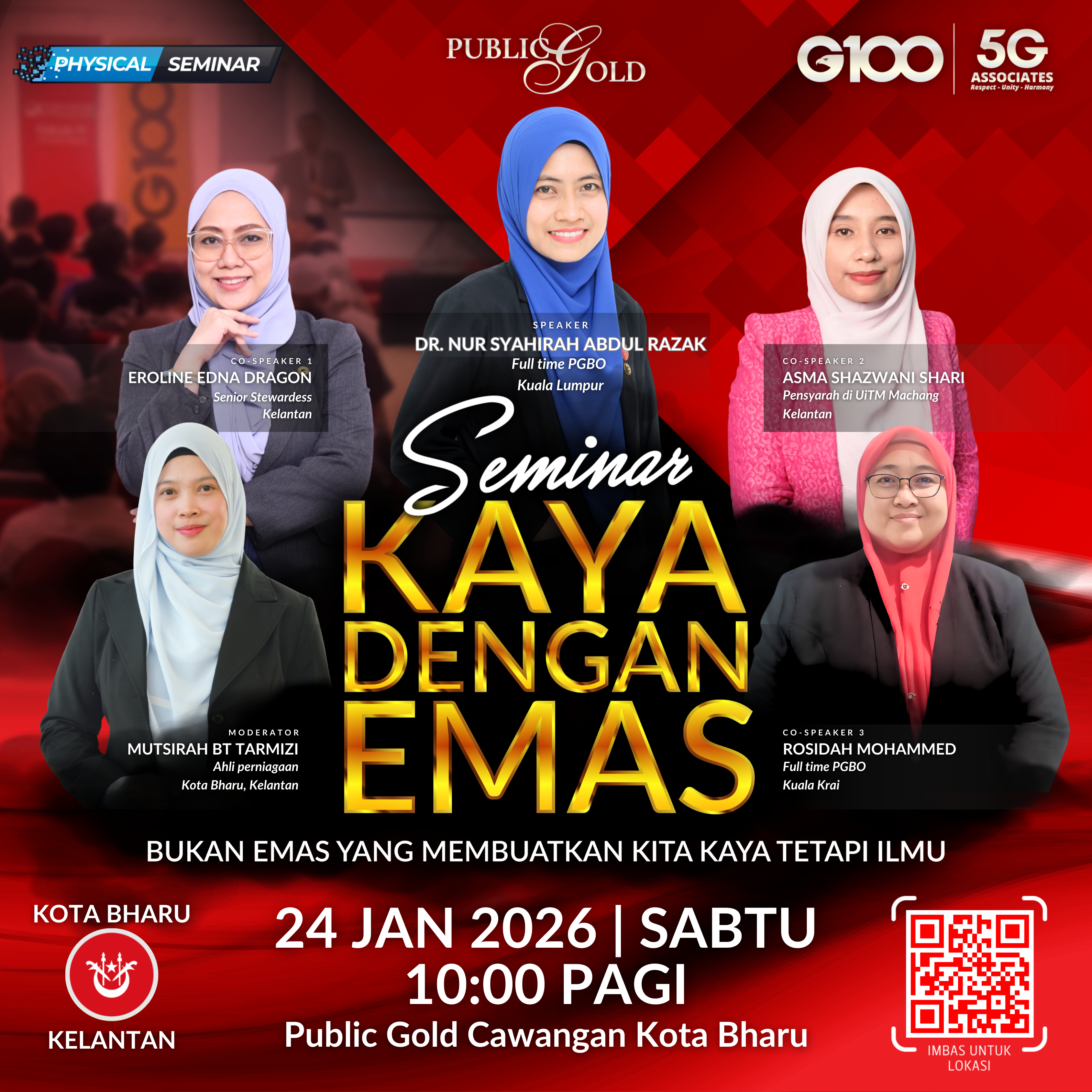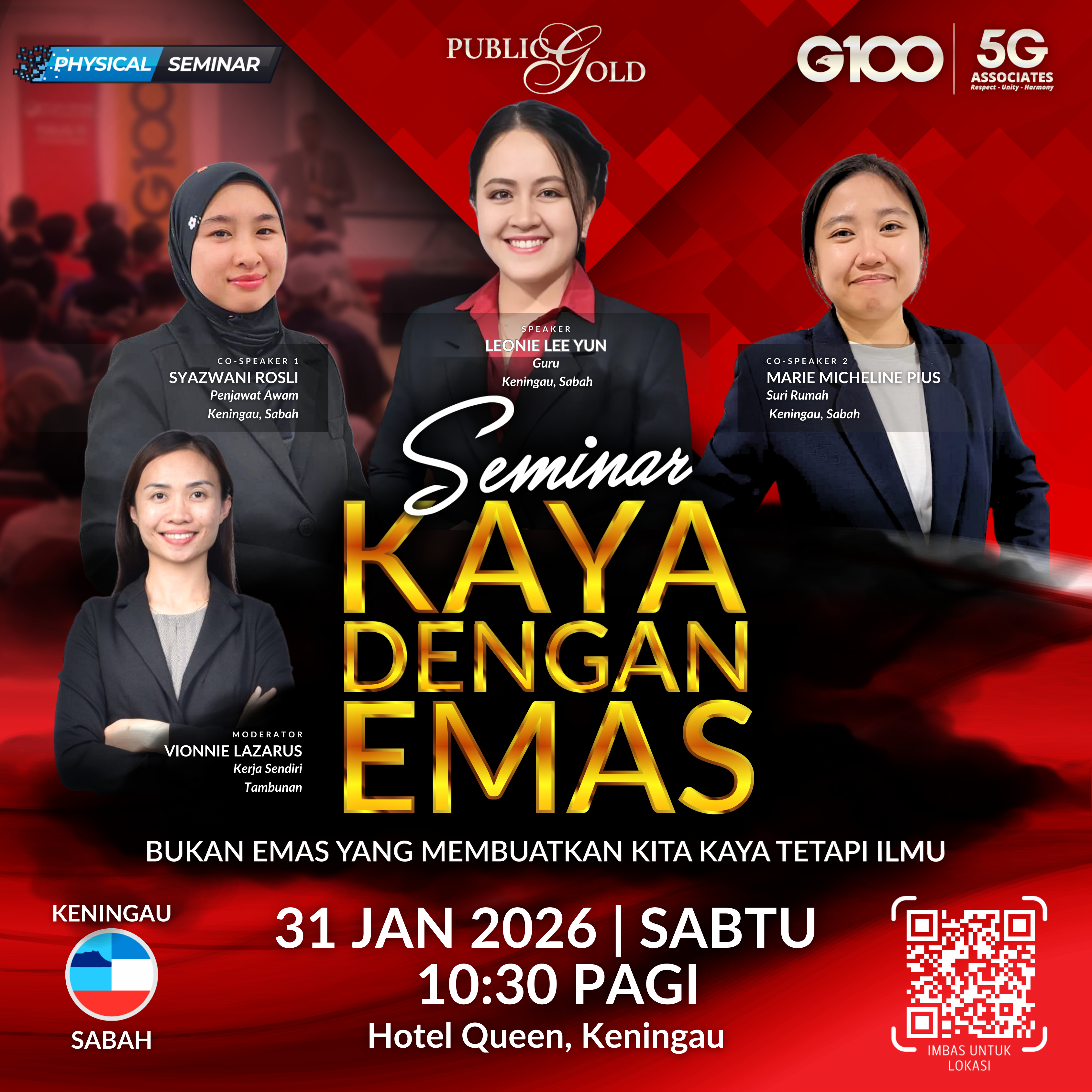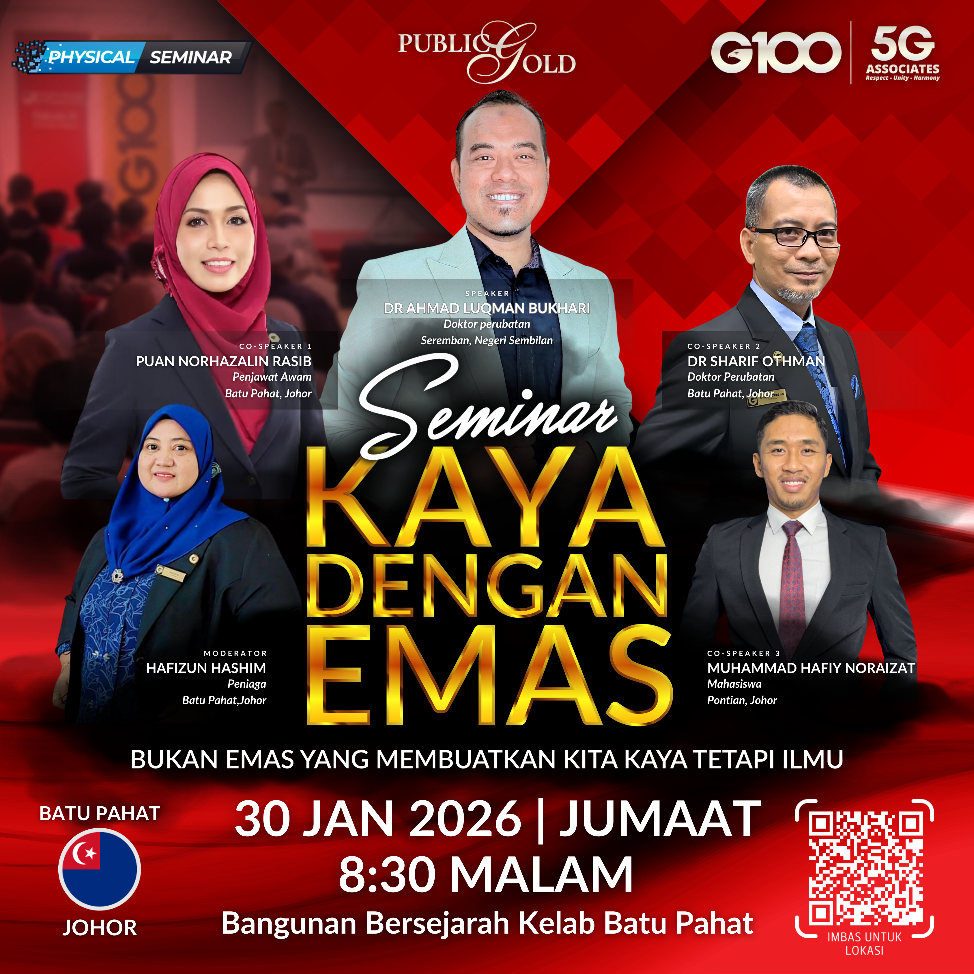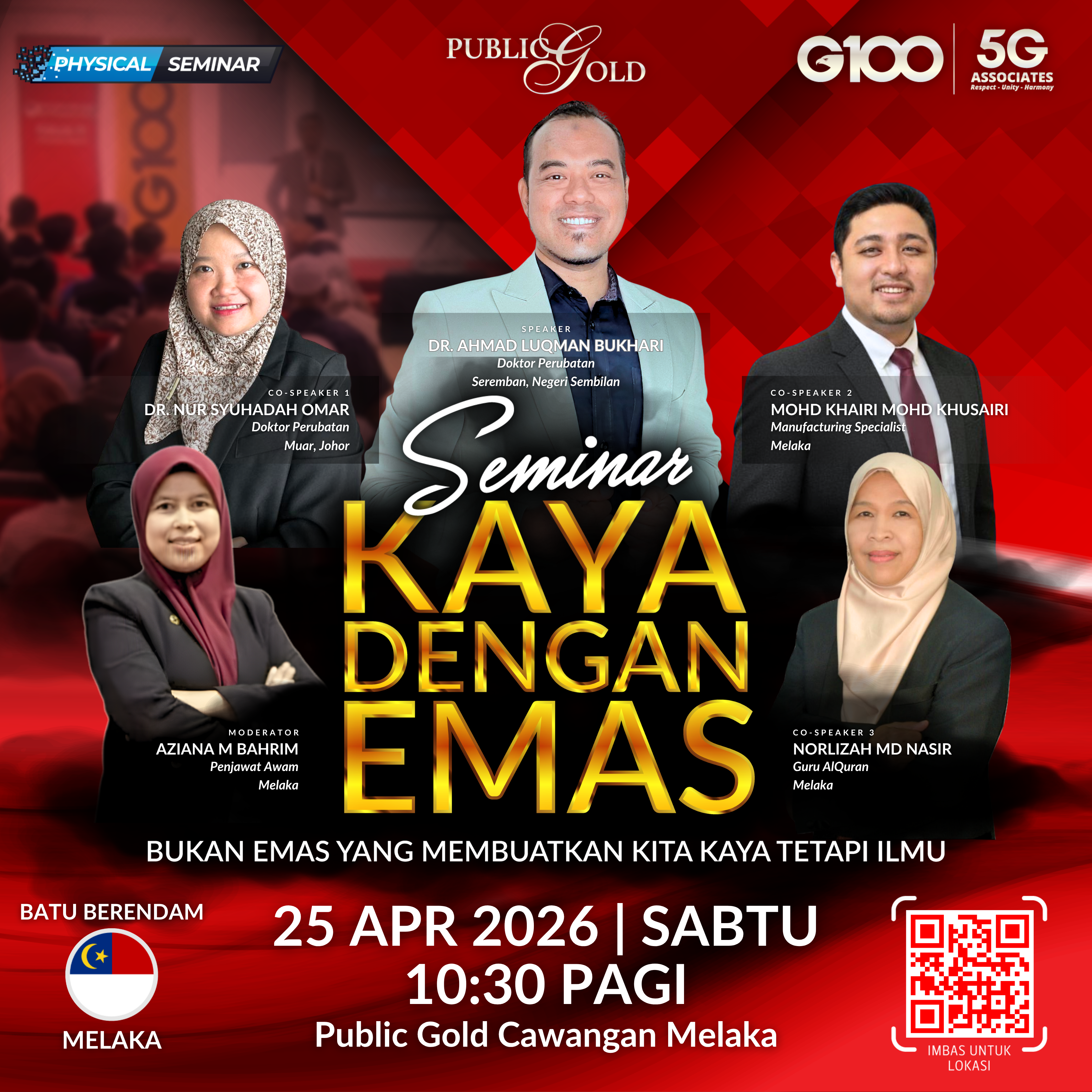 Penyertaan percuma. Terhad 100 pendaftaran pertama. Cabutan bertuah dan promosi (firesales) emas juga disediakan. Sila datang awal untuk dapatkan seat selesa. Seminar akan bermula tepat 8:30 malam