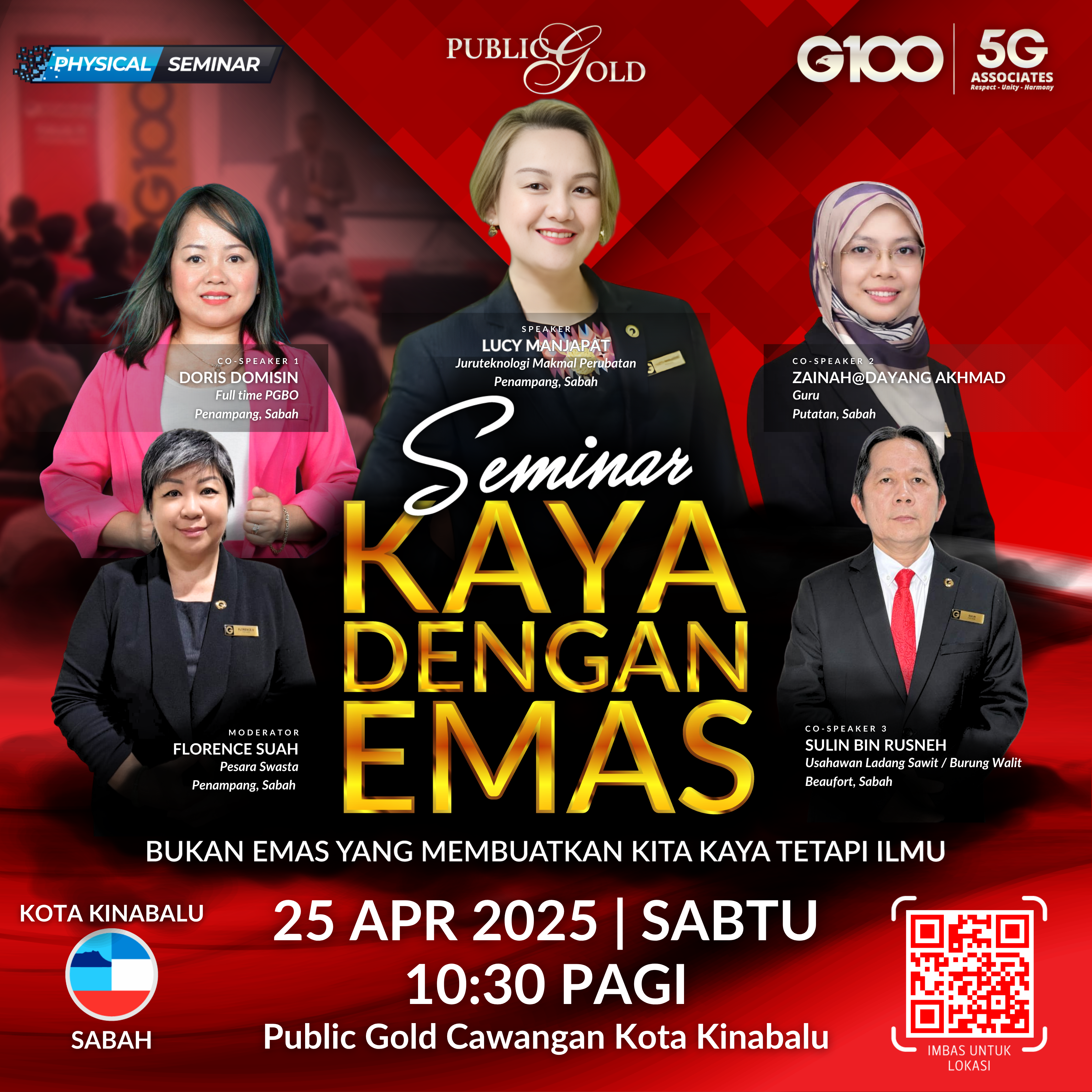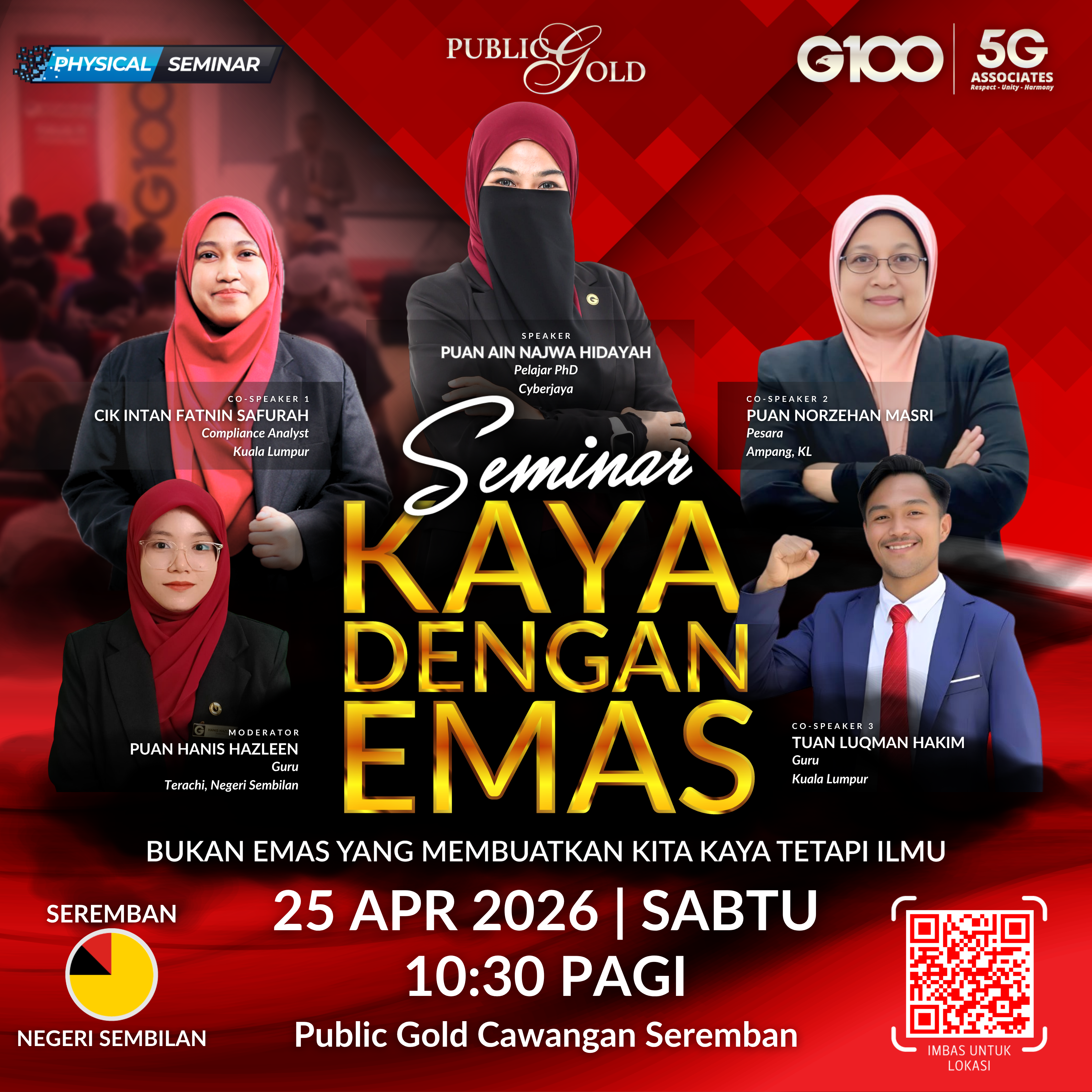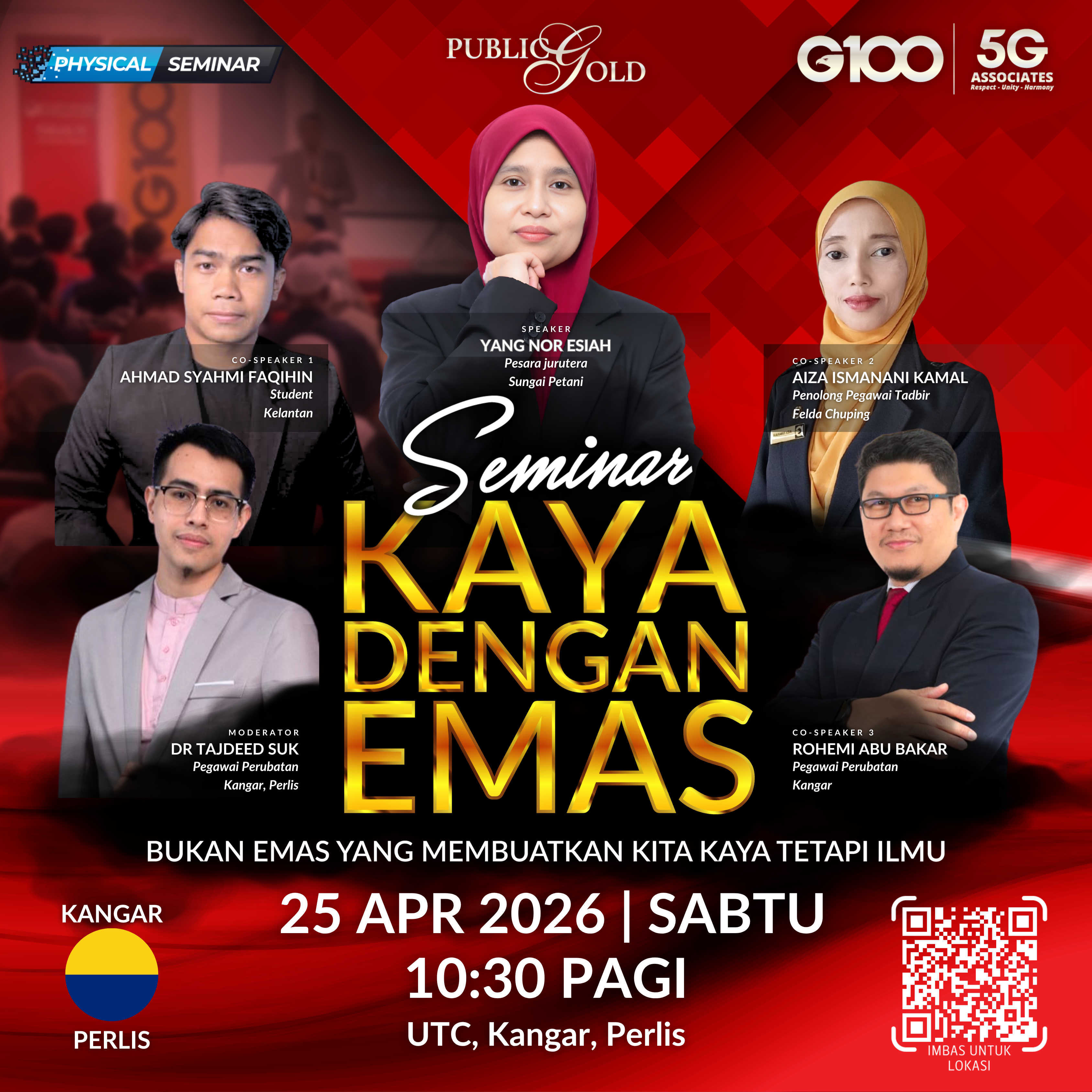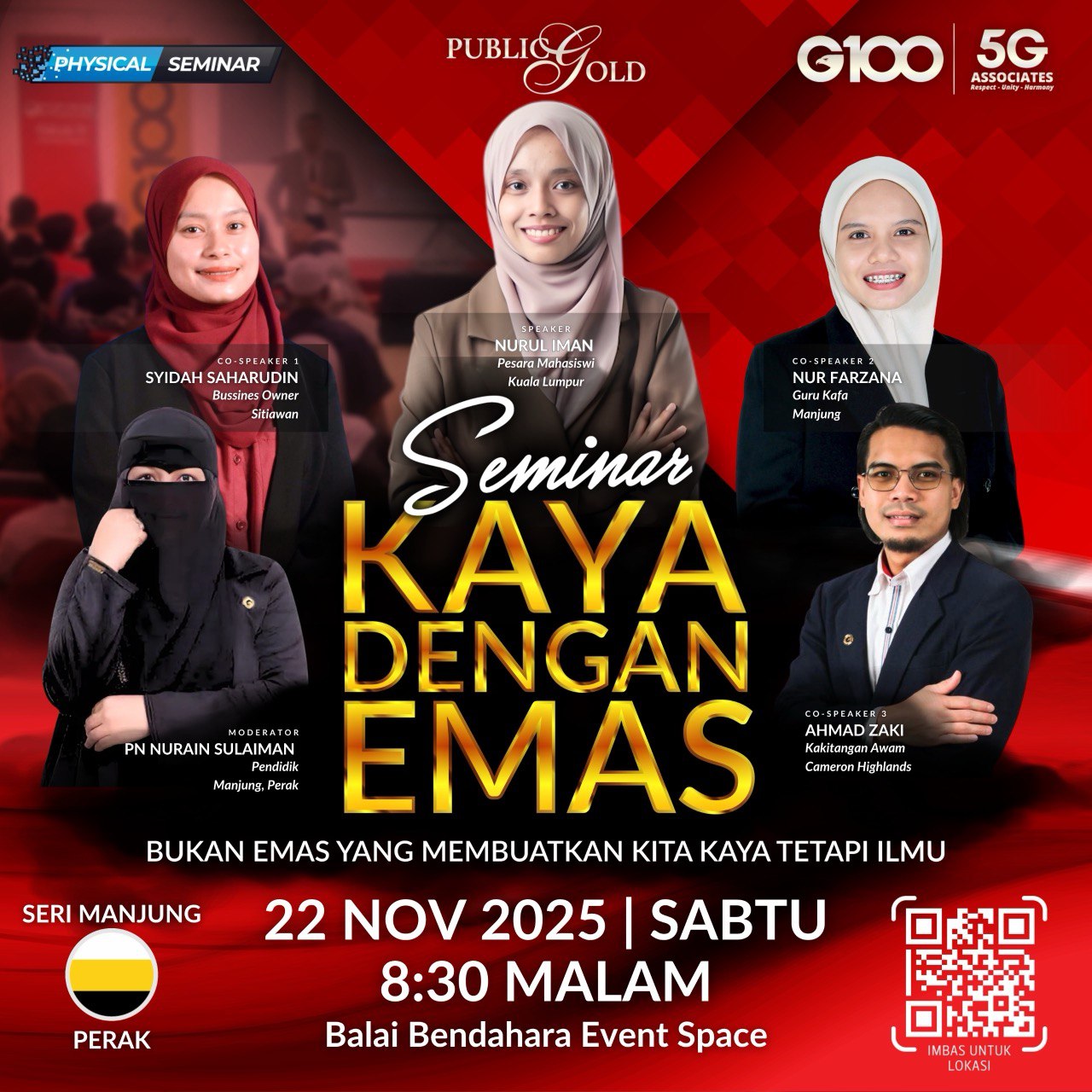 Penyertaan percuma. Terhad 100 pendaftaran pertama. Cabutan bertuah dan promosi (firesales) emas juga disediakan. Sila datang awal untuk dapatkan seat selesa. Seminar akan bermula tepat 10:00 pagi.