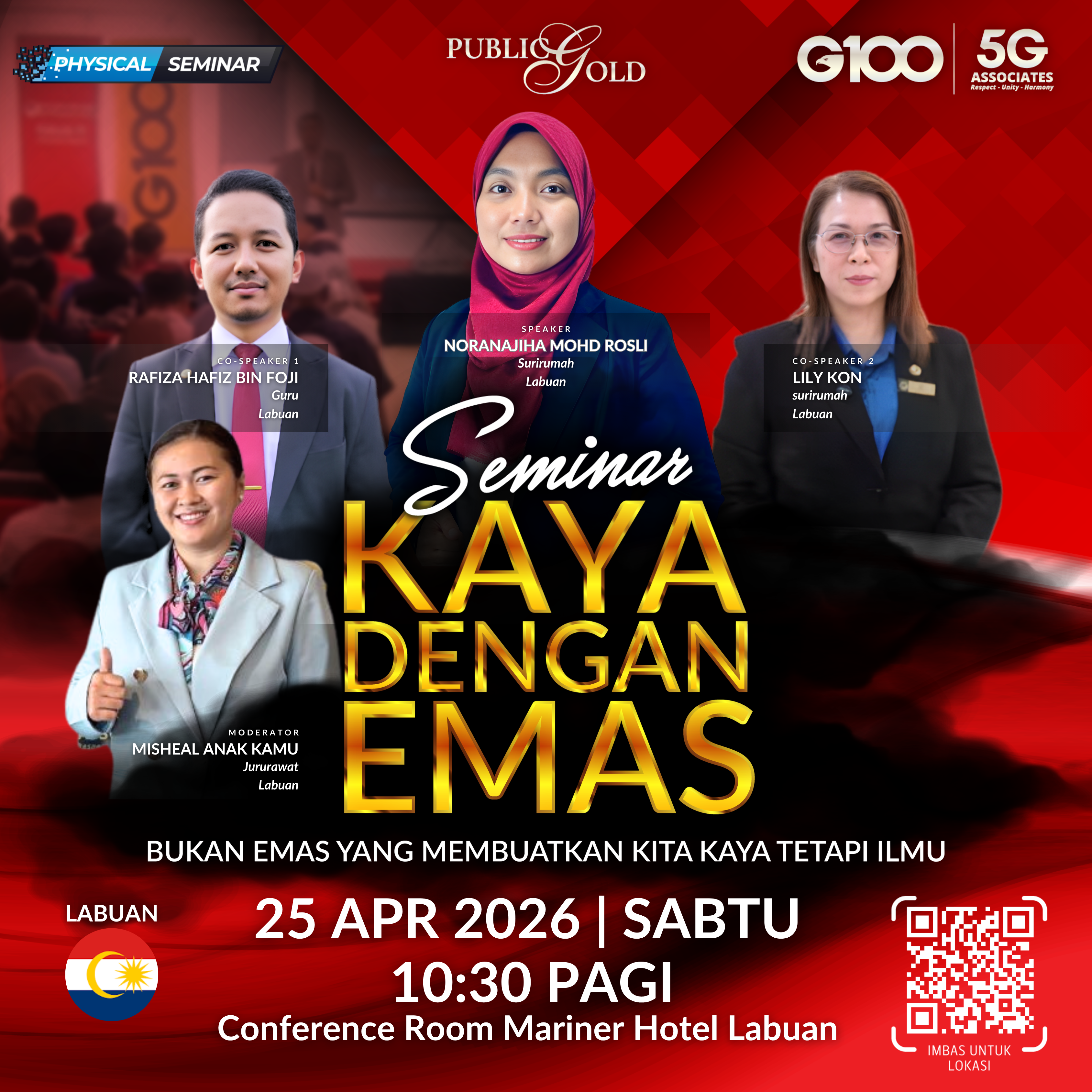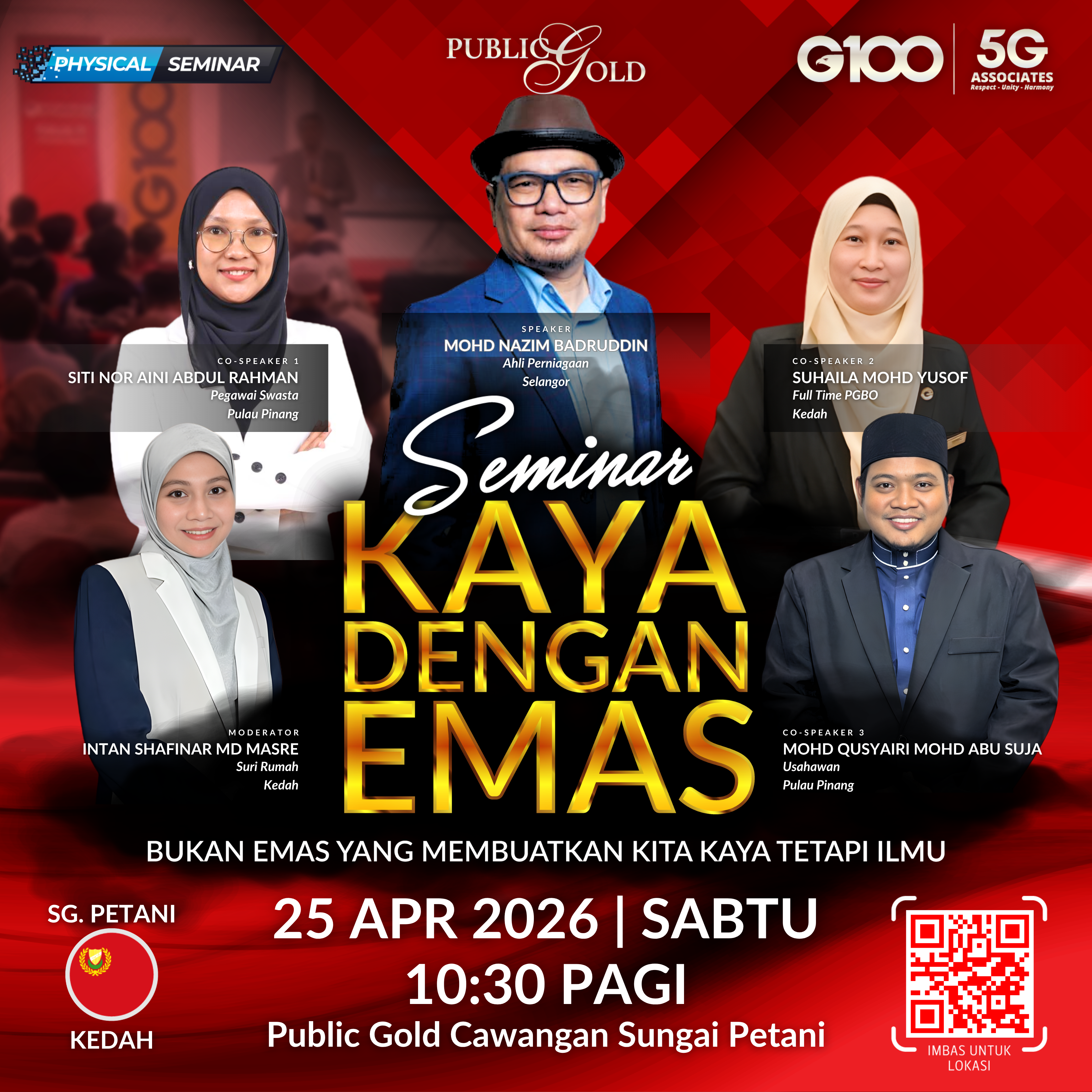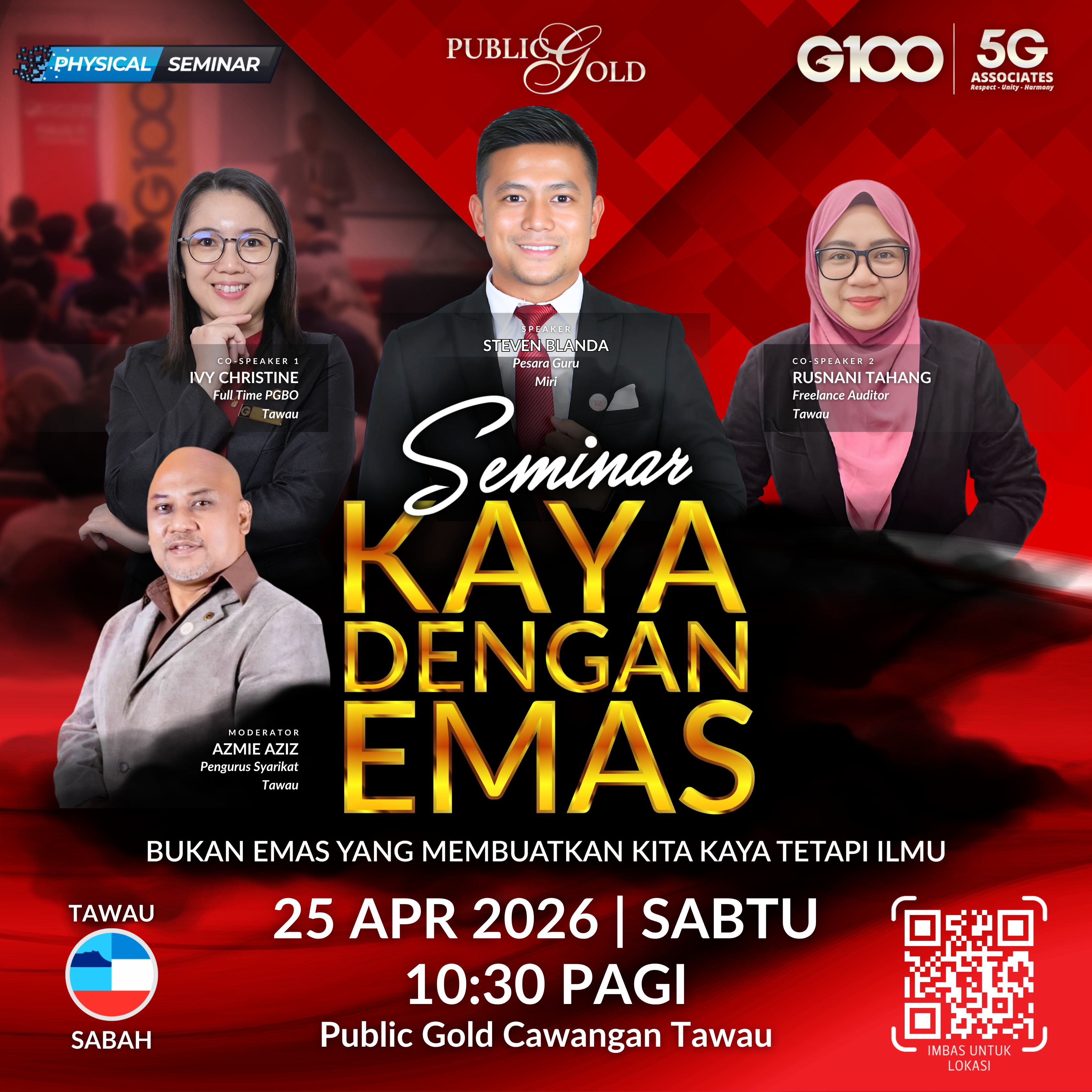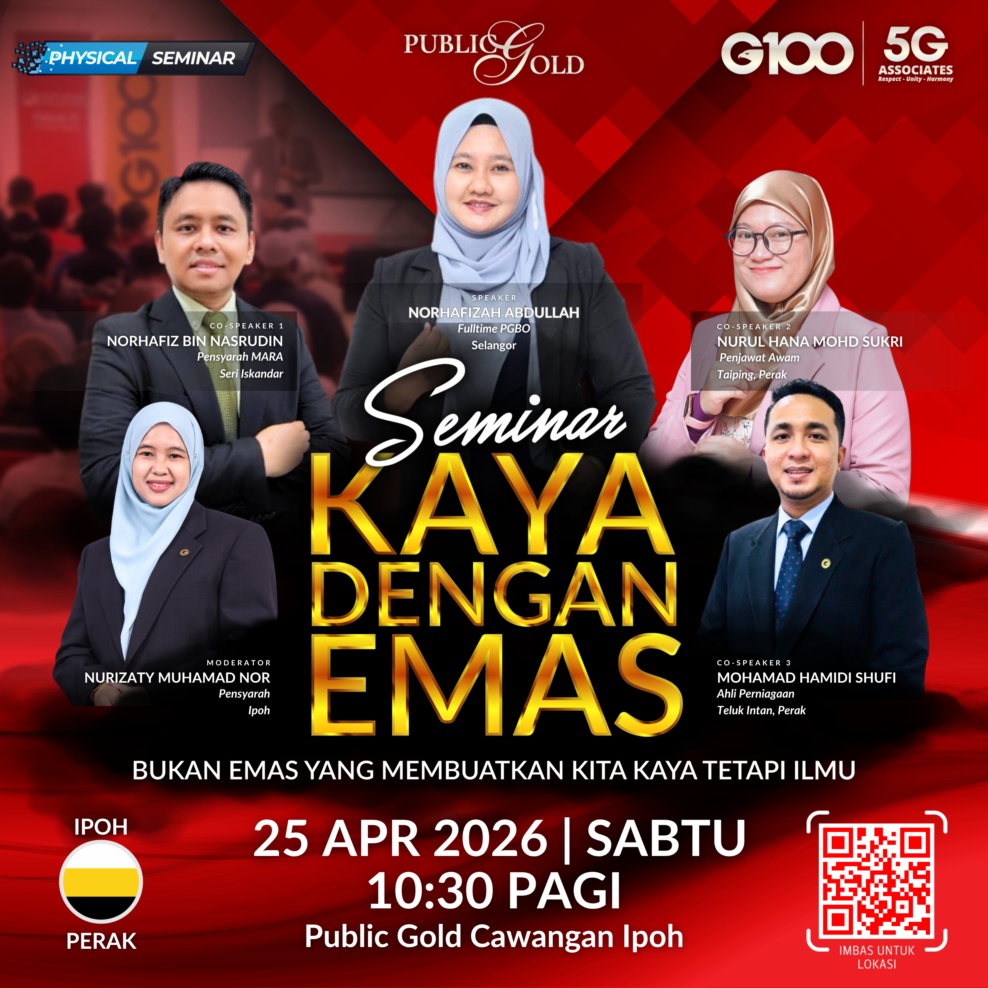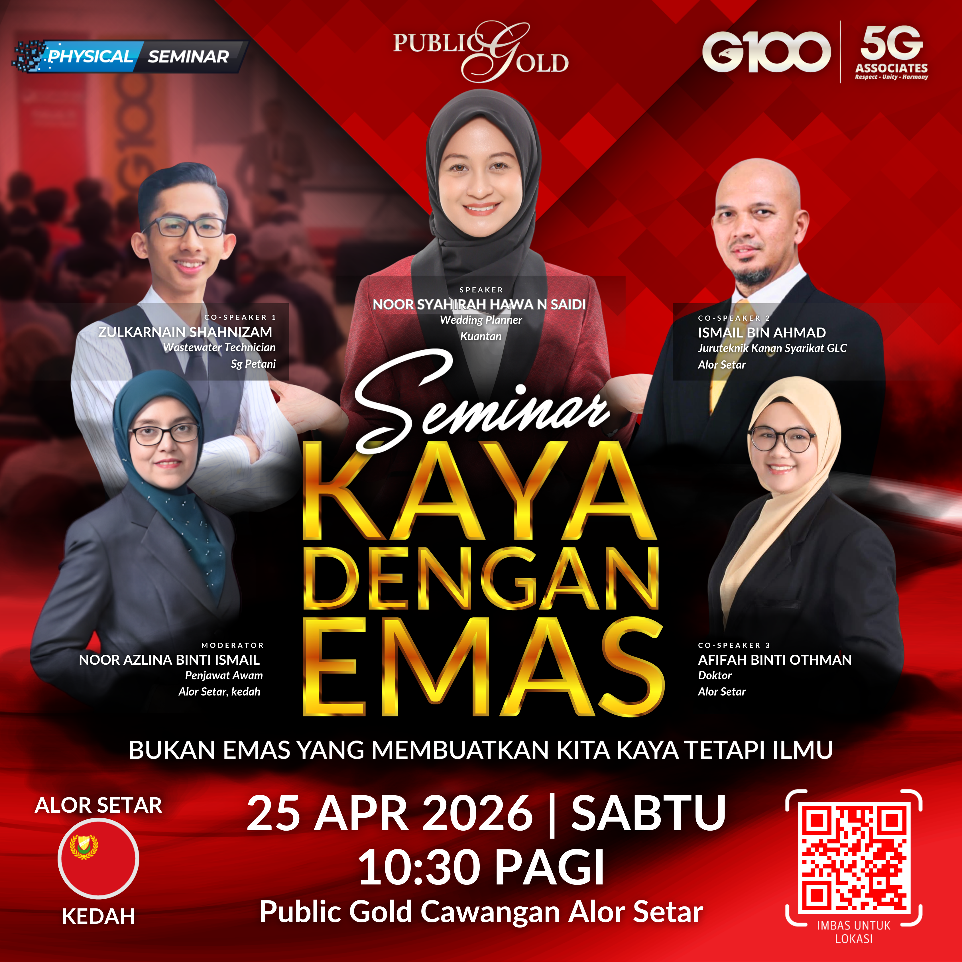 Penyertaan percuma. Terhad 100 pendaftaran pertama. Cabutan bertuah dan promosi (firesales) emas juga disediakan. Sila datang awal untuk dapatkan seat selesa. Seminar akan bermula tepat 10:00 pagi.