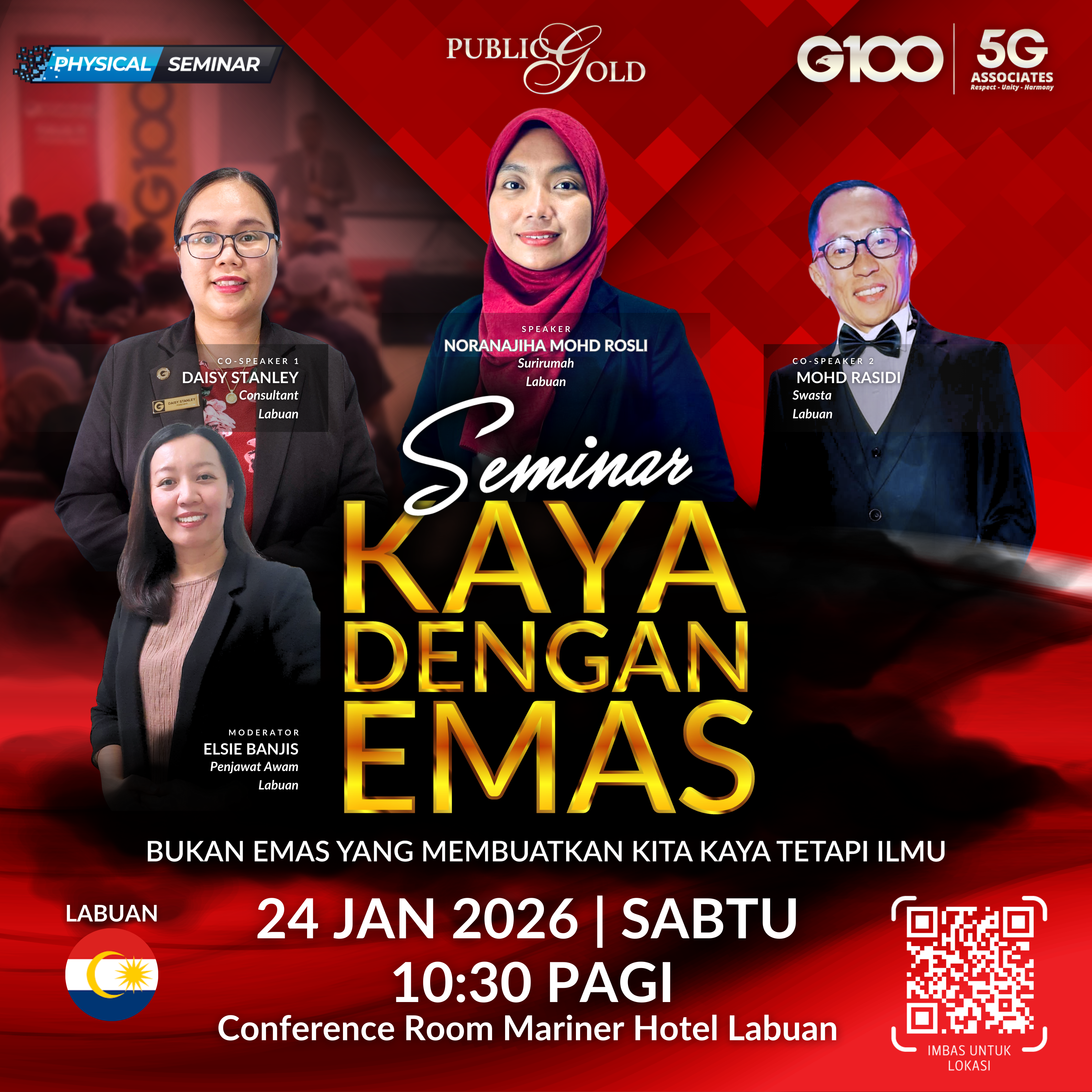Penyertaan percuma. Terhad 100 pendaftaran pertama. Cabutan bertuah dan promosi (firesales) emas juga disediakan. Sila datang awal untuk dapatkan seat selesa. Seminar akan bermula tepat 2:30 petang