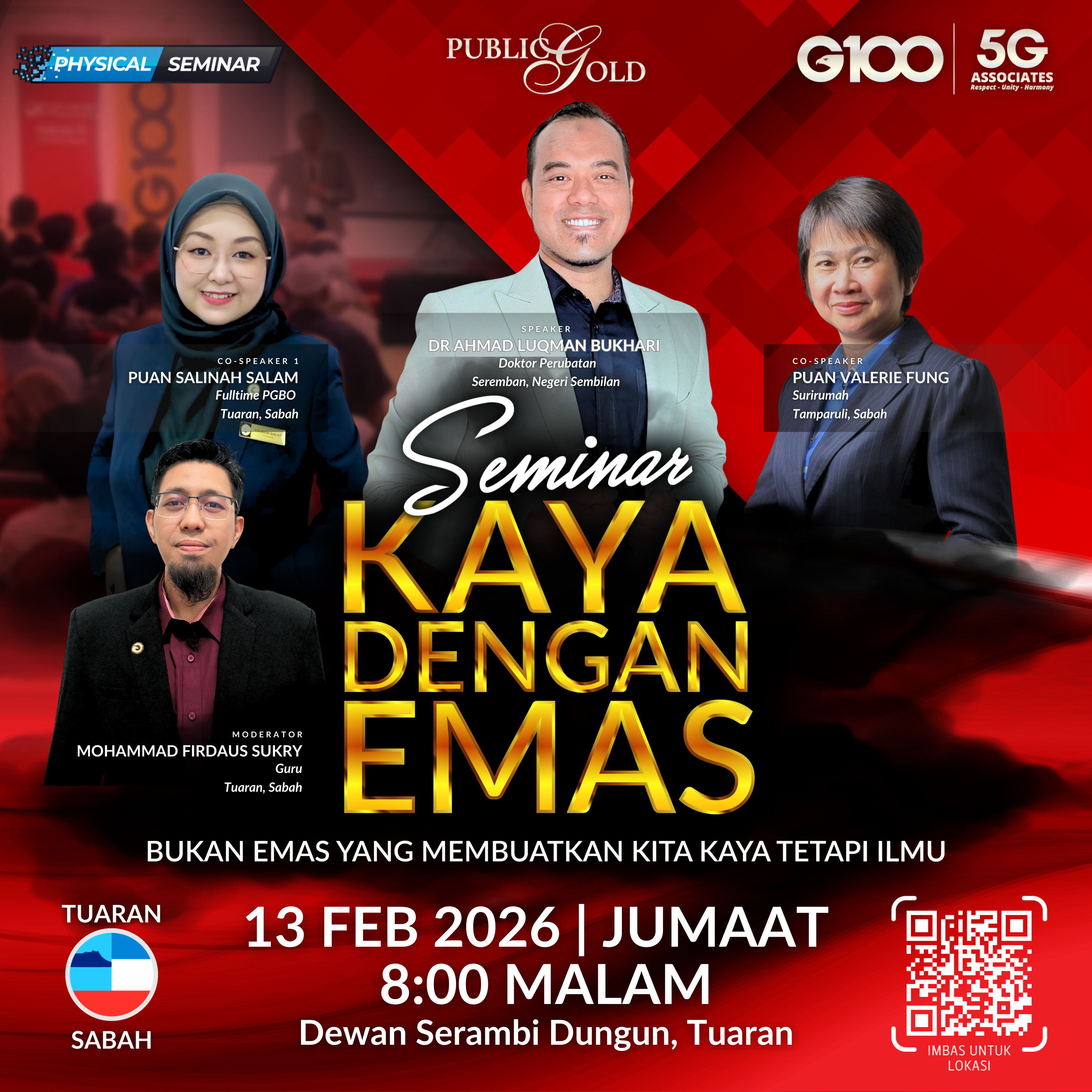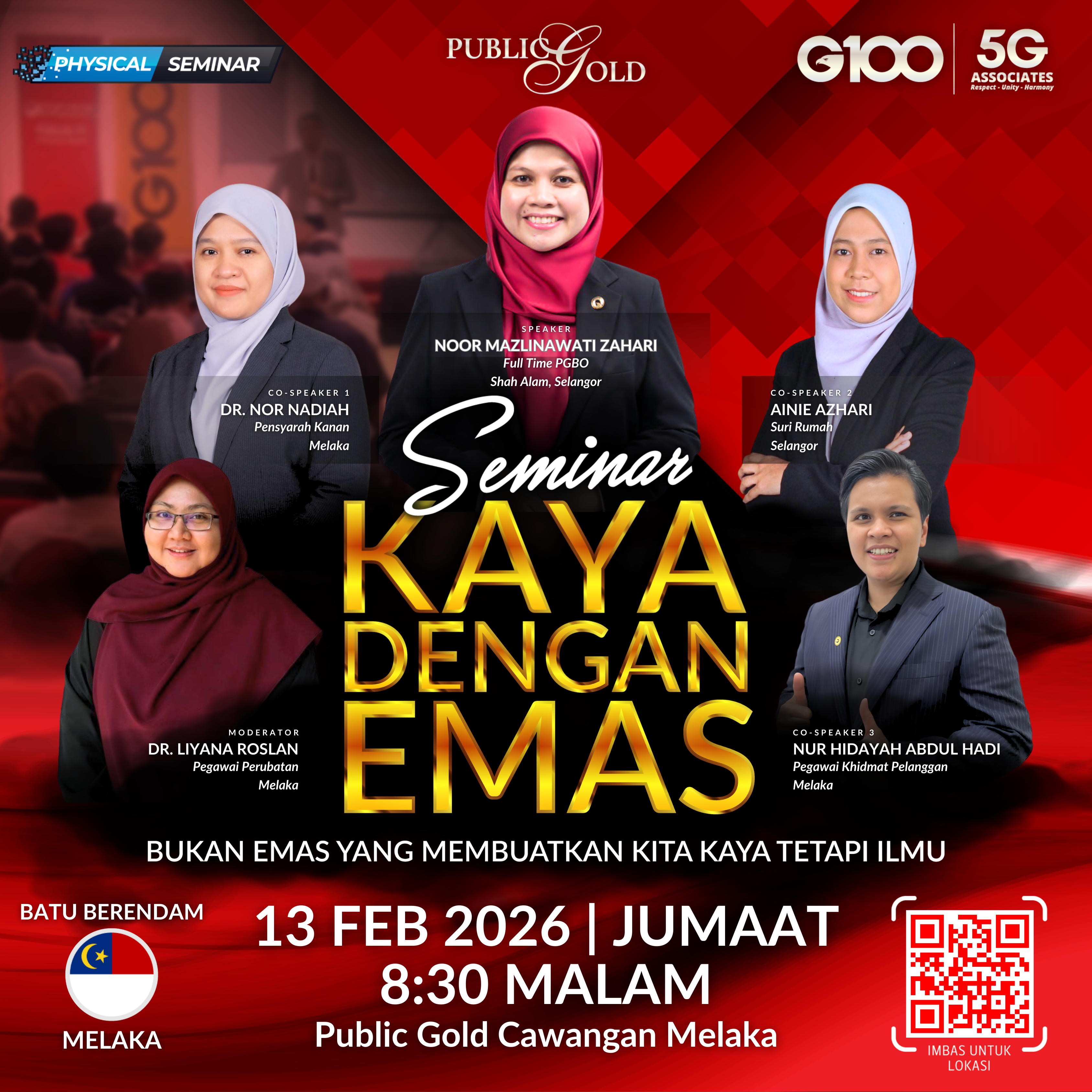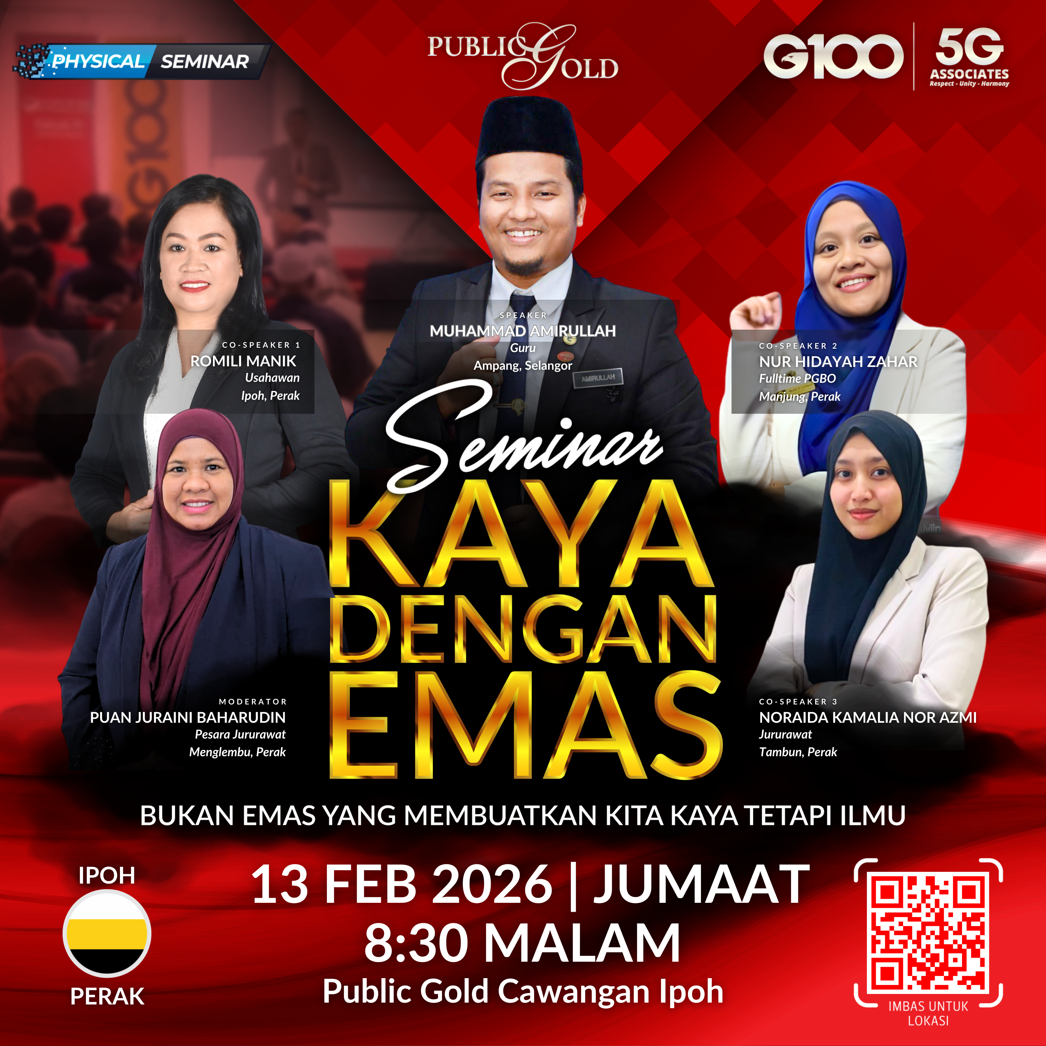 Penyertaan percuma. Terhad 100 pendaftaran pertama. Cabutan bertuah dan promosi (firesales) emas juga disediakan. Sila datang awal untuk dapatkan seat selesa. Seminar akan bermula tepat 8:00 malam